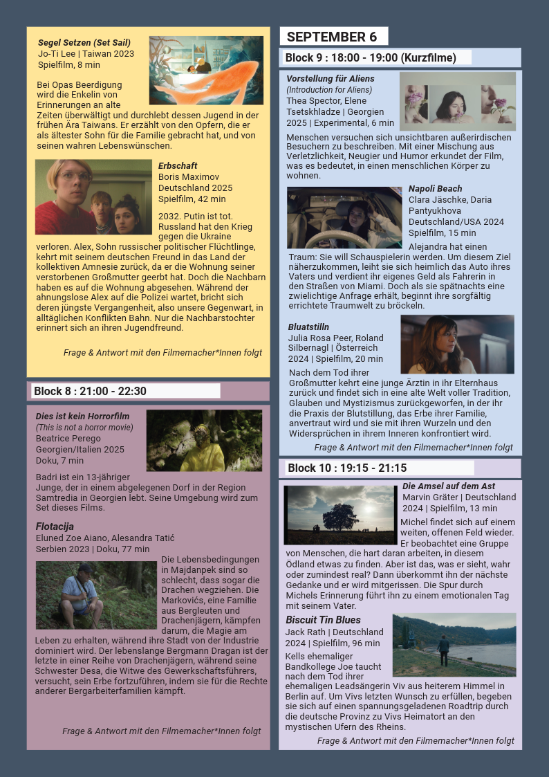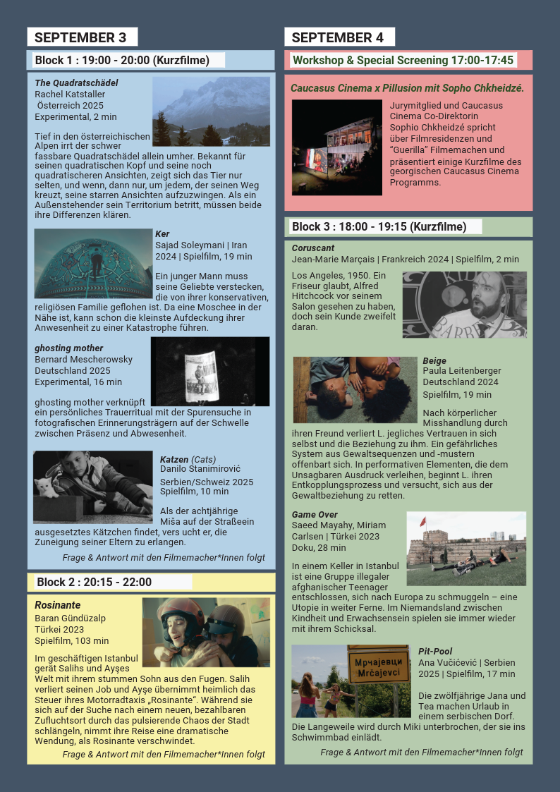 Unten können Sie das Programm für das Pillusion Filmfestival 2025 einsehen und herunterladen.