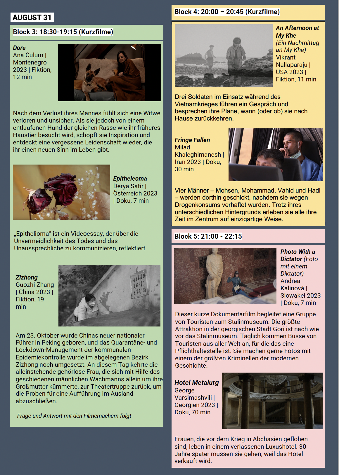2023 Festival Unten können Sie das Programm für das Pillusion Filmfestival 2023 einsehen und herunterladen. 2023 Festival ProgramDownload